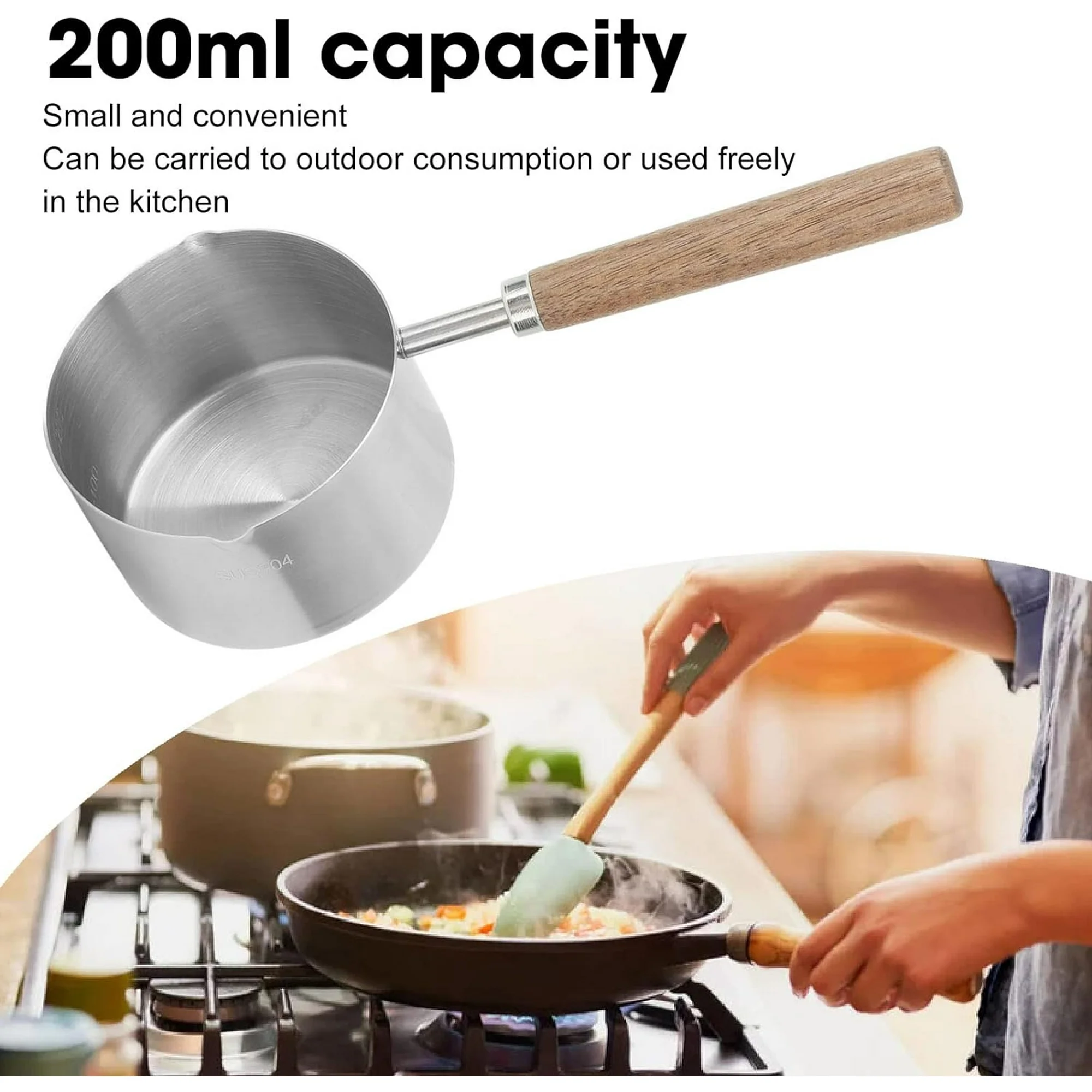 4.Milk butter warmer pot is compact and convenient, with a 200ml capacity, so it can be taken outdoors or used freely in the kitchen.