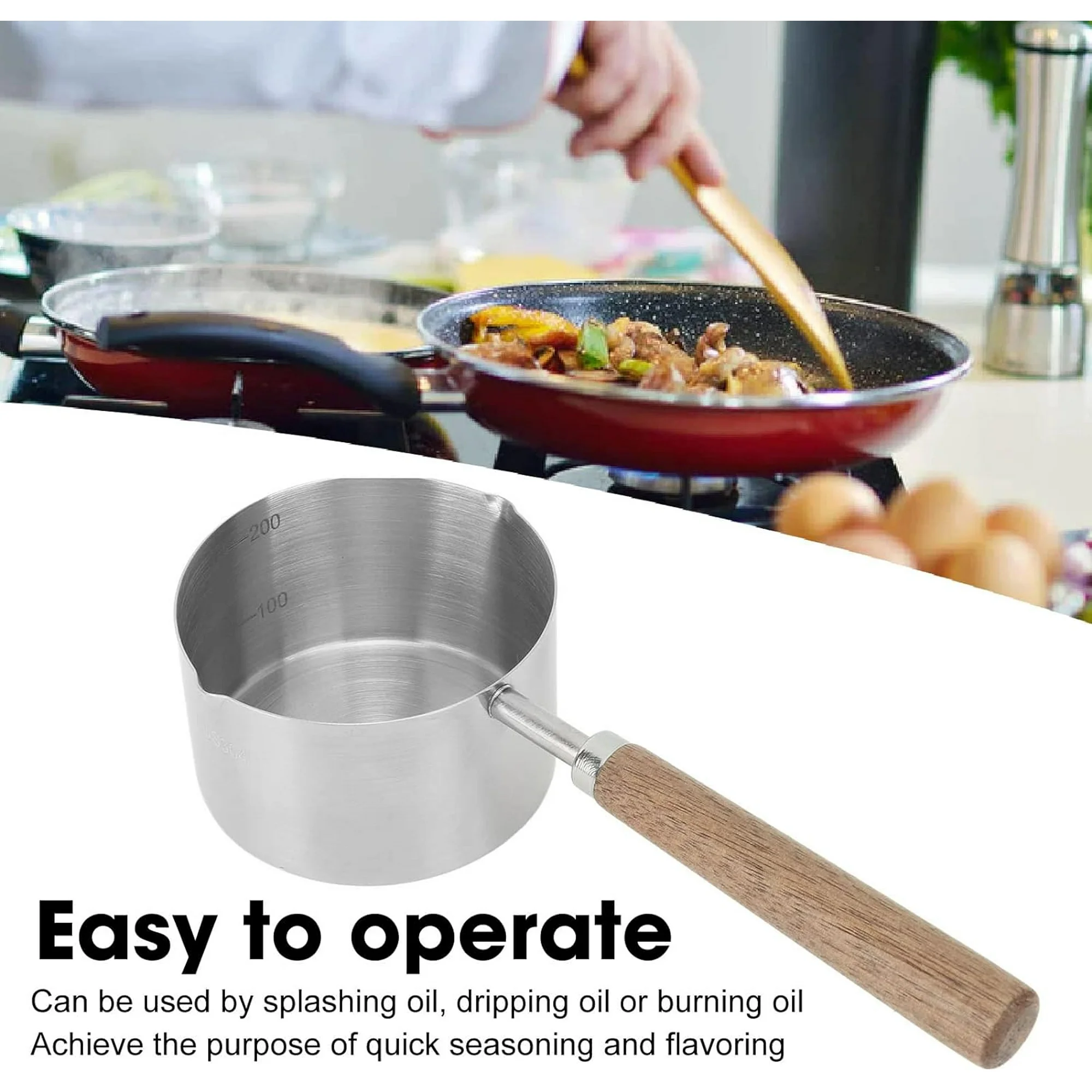 This mini stainless steel saucepan is perfect for small cooking tasks! With its 200ml capacity, it’s great for melting butter, heating small portions of sauces, or even warming milk. The flat bottom design ensures even heat distribution, and it works great on my stove. It handles high temperatures without warping, and cleaning it is super easy — no sticking or staining. Ideal for both home kitchens and small tasks in a restaurant setting. Very happy with the quality for the price!