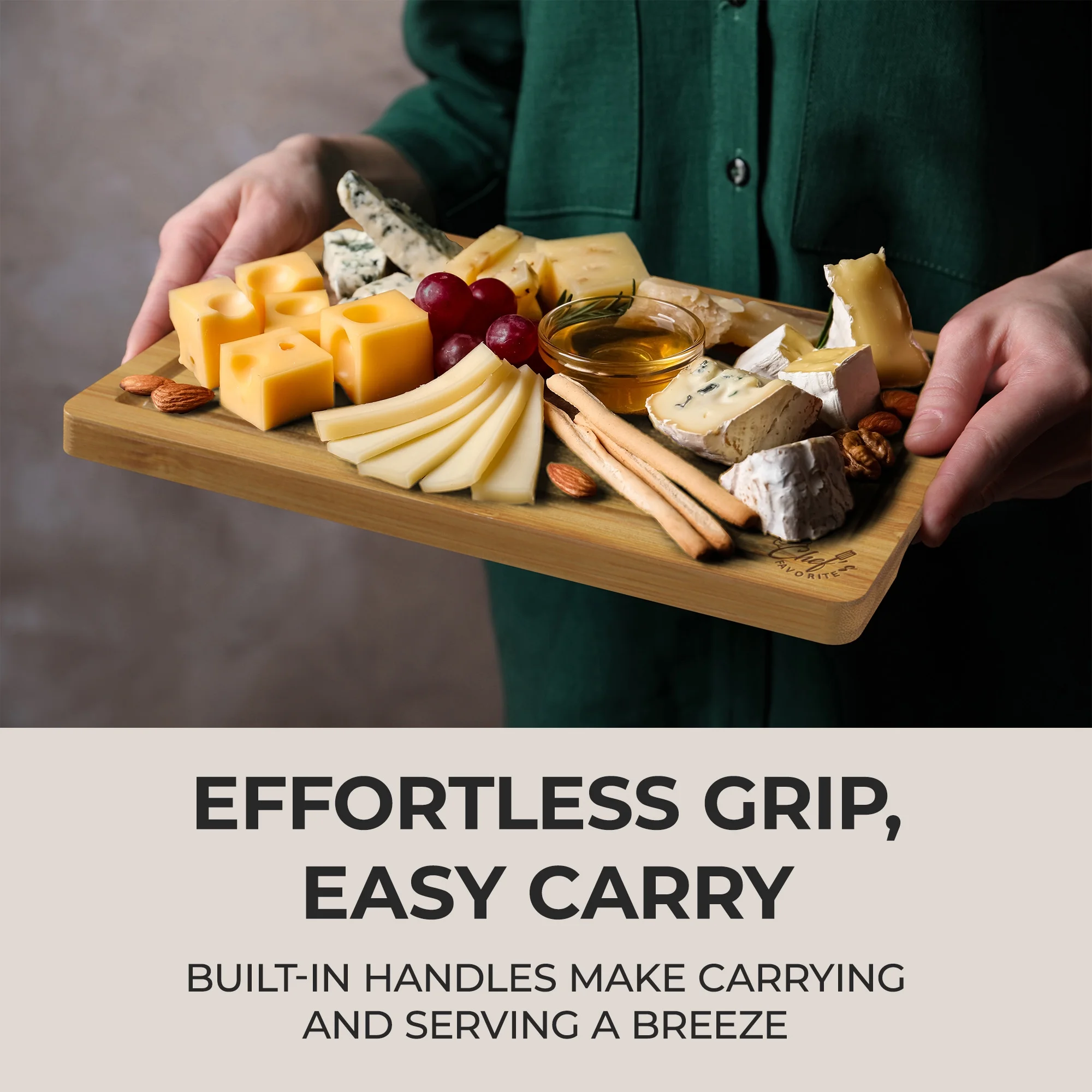 This Bamboo Cutting Board Set Will Unleash Your Inner Master Chef! Cutting board sets are gaining more and more popularity among cooking enthusiasts, and for a good reason, as they turn any chopping, cutting, or carving task into a breeze, helping you prepare delicious meals without turning your kitchen into a hot mess. Presenting The Elite Bamboo Cutting Board Set Of 3 By Chef’s Favorite! Made of premium 100% natural bamboo that will pass the test of time and available in three different size options to serve all your meal-prepping needs, these cutting boards will quickly become your new favorite kitchen accessory. They are designed with your comfort and safety in mind, while their sleek look allows you to use them as charcuterie boards to serve finger food to your guests. 3 Sizes To Serve All Cooking Needs! Our cutting boards come in three handy sizes: Small: Perfect for slicing fruits and veggies Medium: Ideal for chopping meat and veggies Large: Great for breaking down whole roasts and prepping big batches No matter what you’re cooking up, we’ve got the right size board to make food prep a breeze! Built-In Handles For Maximum Comfort Every Chef’s Favorite cutting board features built-in handles to help you carry your ingredients from one spot to the other with comfort. Deep Juice Grooves To Prevent Spilling & Leaking Keep your countertop clean and mess-free with these cutting boards that come with deep juice grooves to trap liquid from juicy ingredients. Use Your Bamboo Boards As Serving Platters To Amaze Your Guests Thanks to their sturdiness and elegant look, our cutting boards double as charcuterie boards or serving platters to pass snacks and finger food to your guests. Fill them with sweet and savory delicacies and impress your guests at festive or casual gatherings. Double-Sided Design & Won’t Dull Your Knives! You can use both sides of our bamboo cutting boards to carve your meat, chop vegetables, or prep a fruit garnish for your specialties. The premium materials and smooth surface will ensure your knives will not become dull – even after years of daily chopping and slicing. Minimal & Chic Look Boasting a natural bamboo color and minimalistic design, our cutting boards make the perfect accessory to adorn your kitchen countertop. What You Will Get: 1 x Small Cutting Board – 6″ x 9″ 1 x Medium Cutting Board – 8″ x 12″ 1 x Large Cutting Board – 10″ x 15″ Draw The Biggest Smile On Your Friend’s Face If your friend loves cooking, this set with the three cutting boards makes an iconic gift to spoil them on their birthday, Christmas holidays, office Secret Santa party, or any other festive occasion.