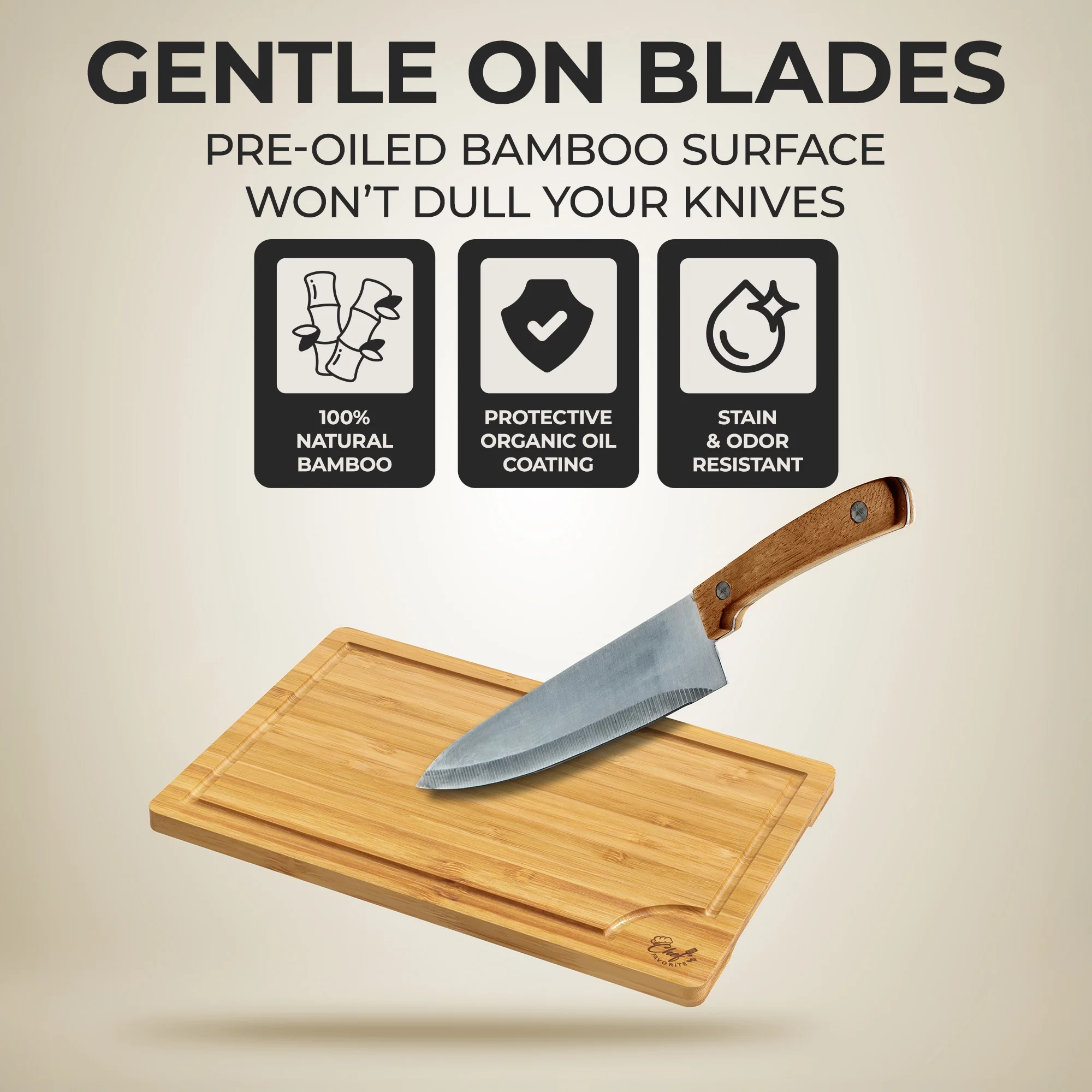 • Cutting Board With Juice Grooves For Mess-Free Meal Prepping: all our cutting boards feature deep juice grooves to trap liquid while you cut and carve chicken, steak, tomatoes, or other juicy ingredients.