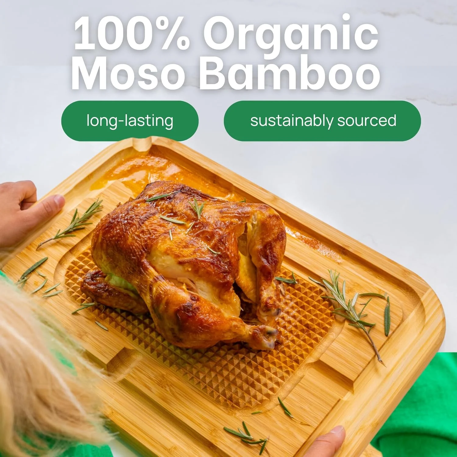 • FSC-certified organic bamboo board for versatile kitchen prep